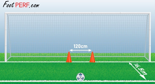 Instructions Place the ball on the 16.5m line and place 2 cones 120cm apart on the goal line.