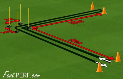 Target The goal of this test is to appreciate the explosiveness of the player's start as well as the mastery of his race and his change of direction at high intensity.